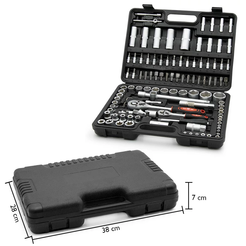 Könnyen szállítható, praktikus szerszámkészlet, amelyre minden otthonnál szükség van! Erős, króm-vanádium acélból készült, strapabíró készlet, amely a legalapvetőbb szerszámokat tartalmazza. Alkalmas kisebb autószerelői munkálatokhoz, bútor összeszereléshez vagy kerékpár javításához. Racsnis tekerőnyelének köszönhetően könnyebben és gyorsabban haladhat a munkafolyamatokkal.