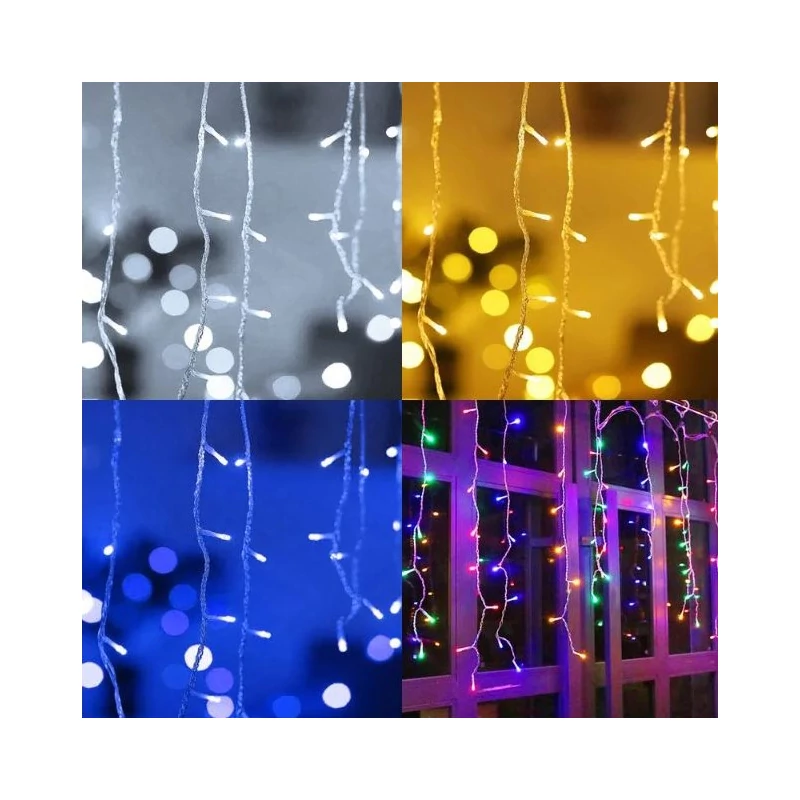 25 méteres, 500 LED-es, karácsonyi jégcsap izzósor, sziporkázó fényfüzér – melegfehér és hidegfehér fénnyel