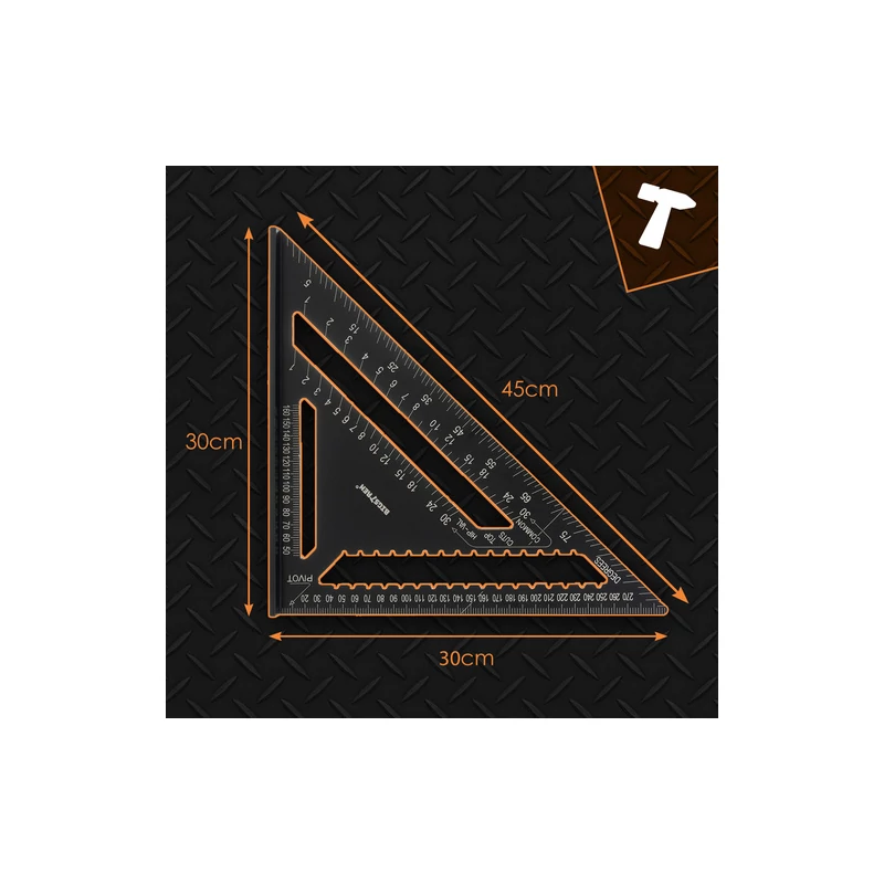 Alumínium ács szögmérő, ács vonalzó, ácsderékszög, 12" 90° és 45° 5 db ceruzával, fekete