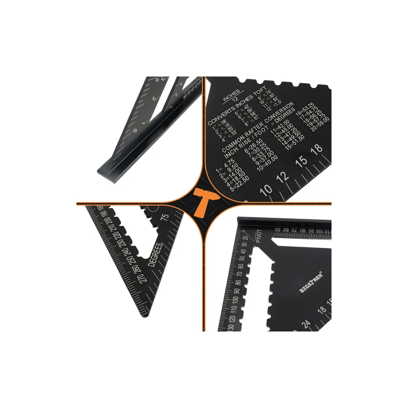 A centiméter és hüvelyk skálák garantálják a pontos méréseket ezzel a szakmai igényeknek való praktikus és gyors alkalmazkodást biztosítva. A skálák tartósságot és olvashatóságot biztosítanak, így mindig biztos lehet benne, hogy tökéletes szögeket mér.