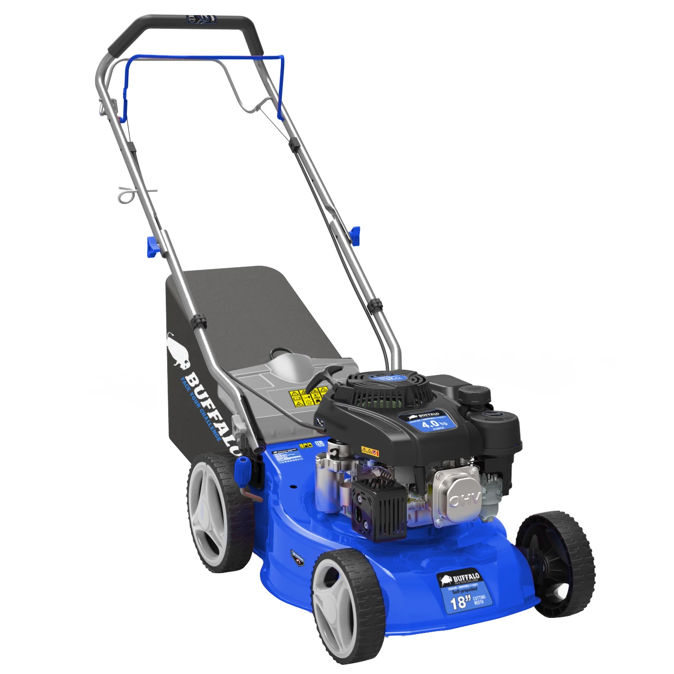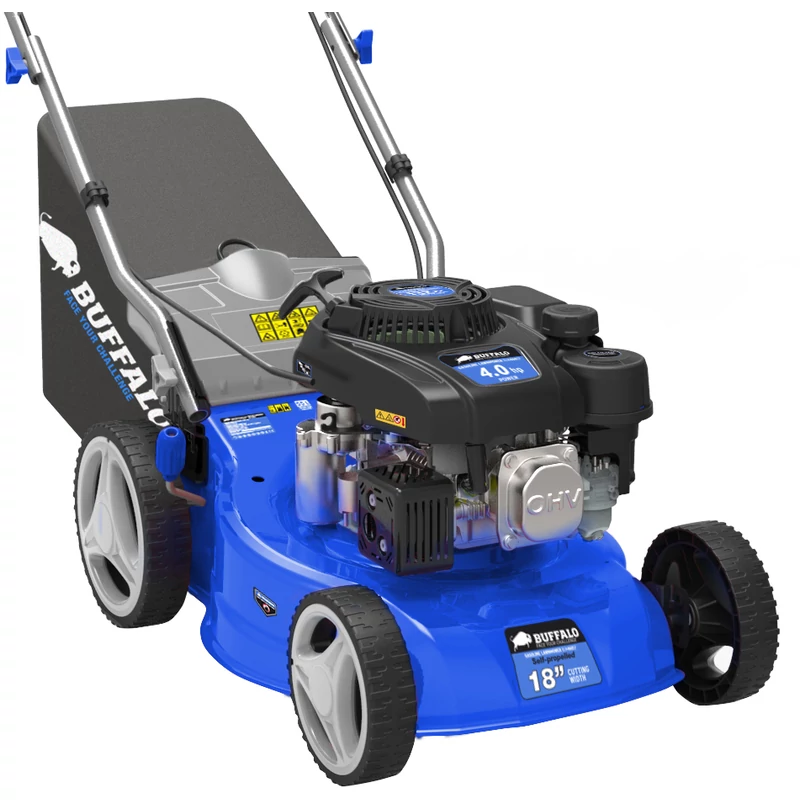 Buffalo önjáró benzinmotoros fűnyíró, 149 cm3, 4 lóerő, 55 literes fűgyűjtővel, 46 cm vágási szélességgel