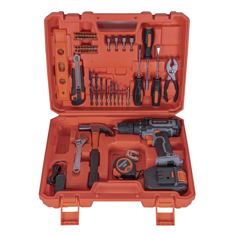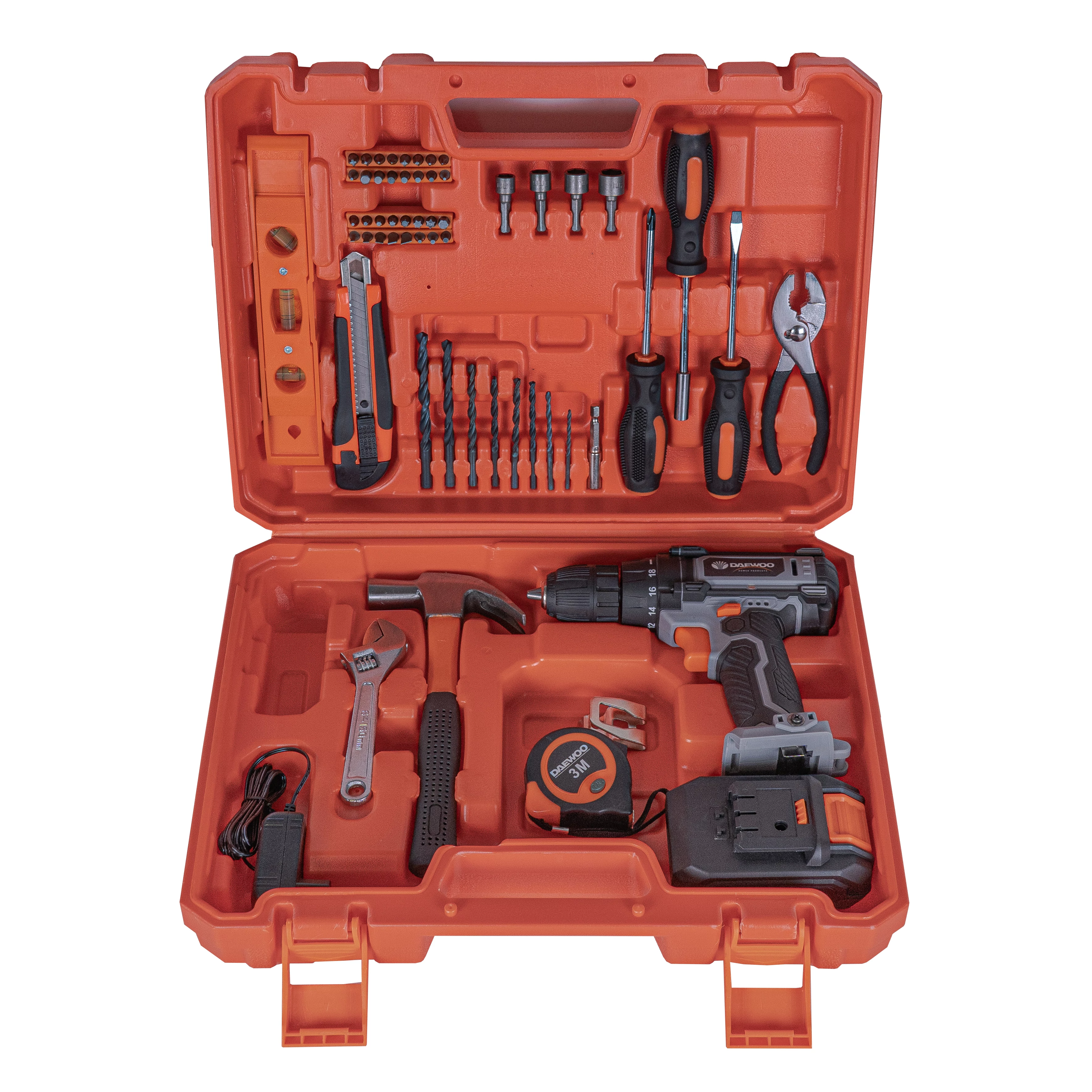 Daewoo 54 részes akkumulátoros szerszámos készlet 20V-os akkus csavarozóval, DACD2000V2
