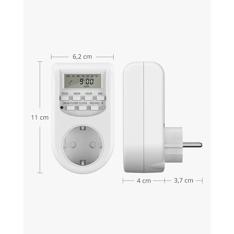 Spóroljon a villanyszámlán, óvja környezetét, éljen kényelmesebben ezzel a digitális, időzíthető csatlakozóval. Használatával nem mennek majd folyamatosan a háztartási gépek, időzítheti azok áramellátását, de a nyári hőségben is hasznos, amennyiben éjszakára, elalváshoz időzítené ventilátorát! A készülék hagyományos konnektorba csatlakoztatható és több módon képes szabályozni a kimenő áramellátást. LCD kijelzőjén nyomógombok segítségével beállíthatja az aktuális időt és hetet, majd egy háztartási gépet, töltőt vagy lámpát csatlakoztatva időzíteni tudja, hogy az eszköz mikor kapcsoljon be és le. Ideális akár rövidtávú, időben korlátozott működéshez is, például nyaralás esetén időszakos lámpa felkapcsoláshoz, amely elrettentő lehet a betörők számára. Programozható heti, napi vagy véletlenszerű működési szakaszokra, illetve választható visszaszámláló funkció is. Kisméretű, könnyen szállítható utazás közben és használható akár nyaralóban, üzlethelyiségekben is. Beépített akkumulátorának köszönhetően a programokat megjegyzi áramtalanítás esetén is.