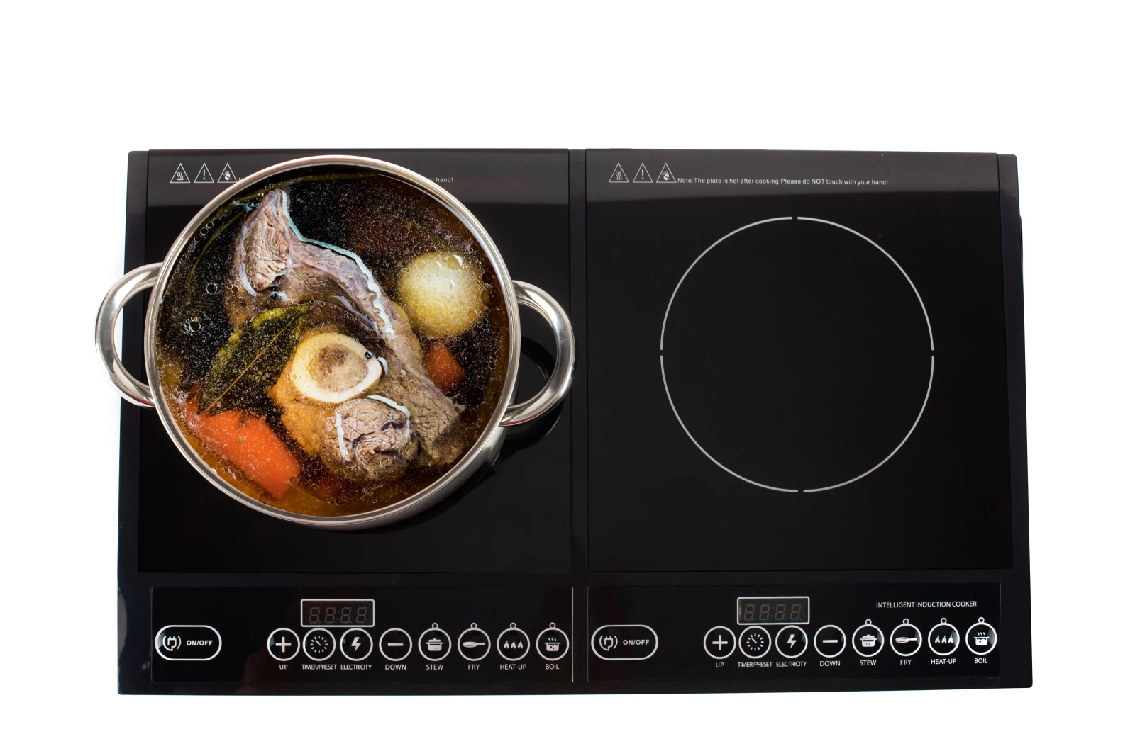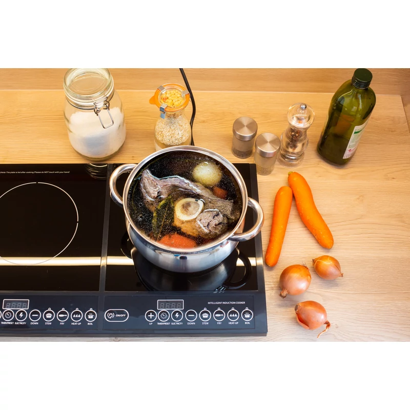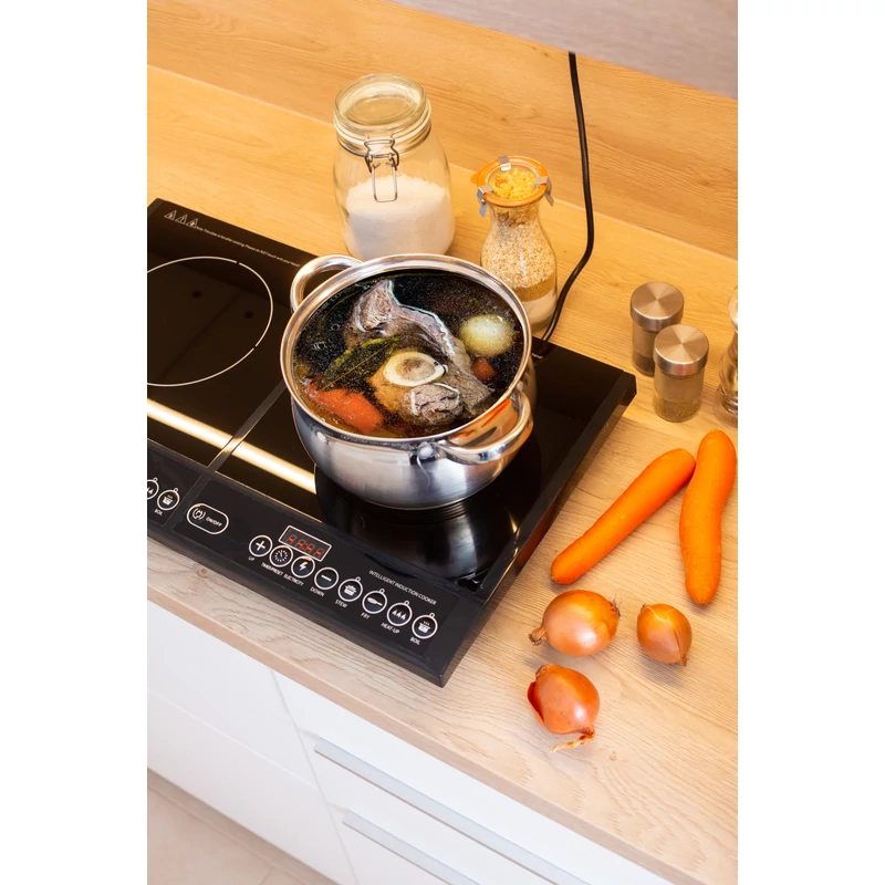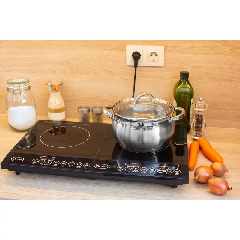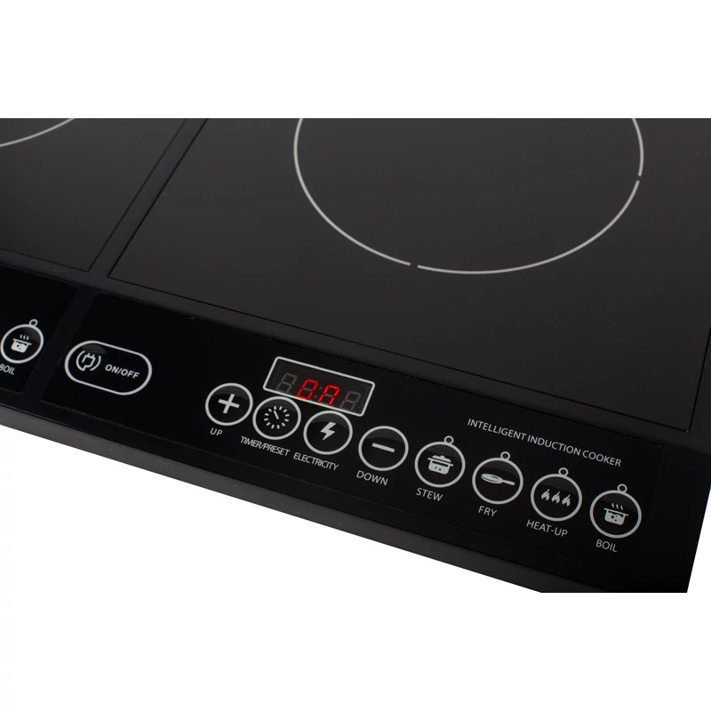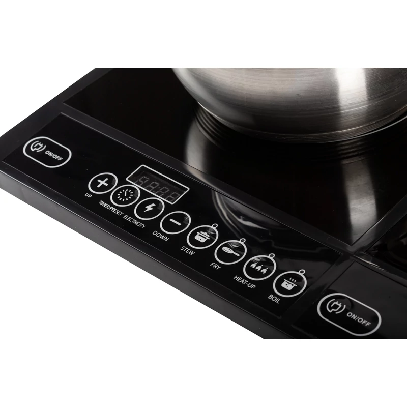 A termék 2 db egyenként kb 280mm-es indukciós főzőlappal rendelkezik. A digitális kijelzőjével egyszerűen és könnyen használható. 8 különböző főzési funkcióval rendelkezik. A főzőlap fekete kristály bevonatot kapott, így könnyen tisztítható.