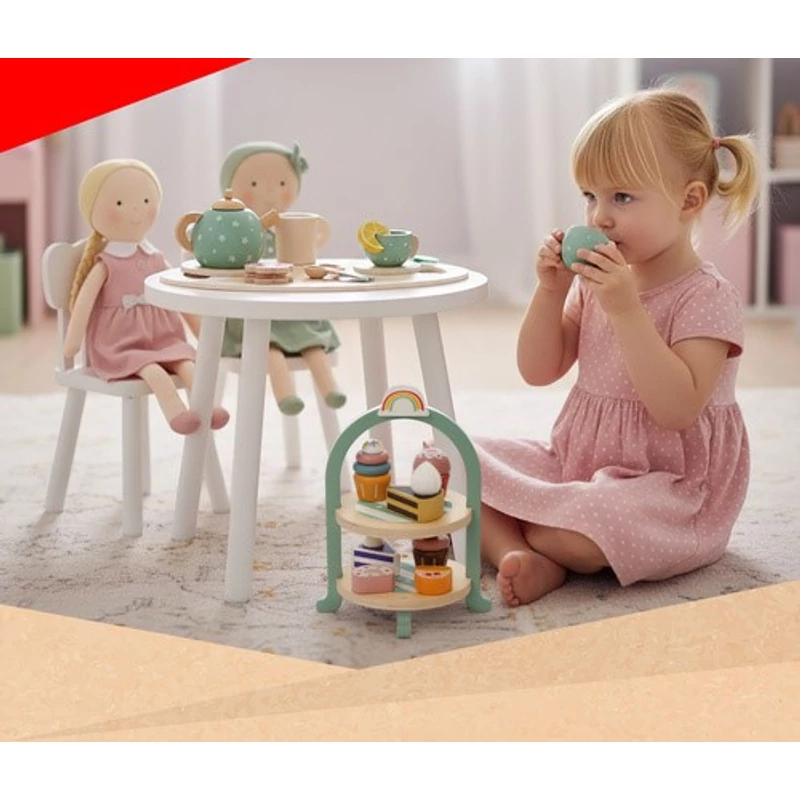 A játék tortatartó állvány és süteményes készlet bevezeti a gyerekeket a cukrászda varázslatos világába a desszertek tálalásától a saját születésnapi történeteik megalkotásáig. Minden darab biztonságos, sima fából készült, és a pasztell színek miatt úgy néznek ki, mint az igazi édességek. Ez nem csak egy játék, hanem egy módszer a kreativitás, az együttműködés és a jó modor tanítására, mosollyal és rendetlenség nélkül.