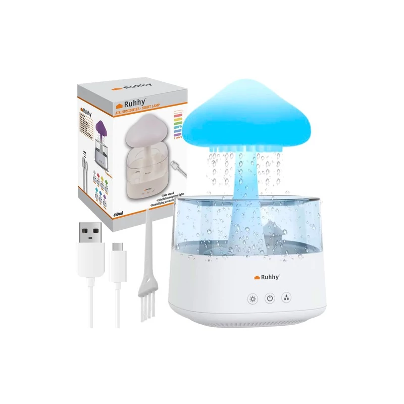 Gomba formájú, ultrahangos, eső funkciós párásító 7 színű LED fénnyel