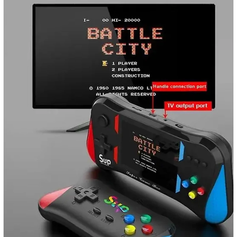 Legyél Te a retro játékok királya! Super Mario, Angry Birds, Street Fighter, Contra, Mortal Combat, Battle City, Tetris, Donkey Kong, PacMan, Bomber Man és még több száz játék egyetlen konzolon! Repülj vissza abba a vicces és izgalmas világába, ahol te is újra gyerek lehetsz. 500 játékból válogathatsz! A konzol mellett egy extra joystick is található a dobozban, így TV-re csatlakoztatva akár ketten is párbajozhattok. Kis méretének köszönhetően akár zsebben is elfér, így nálad lehet bármikor, amikor unatkozol vagy szívesen elidőznél a pixel világban egy kicsit. Gyermeked garantáltan imádni fogja!