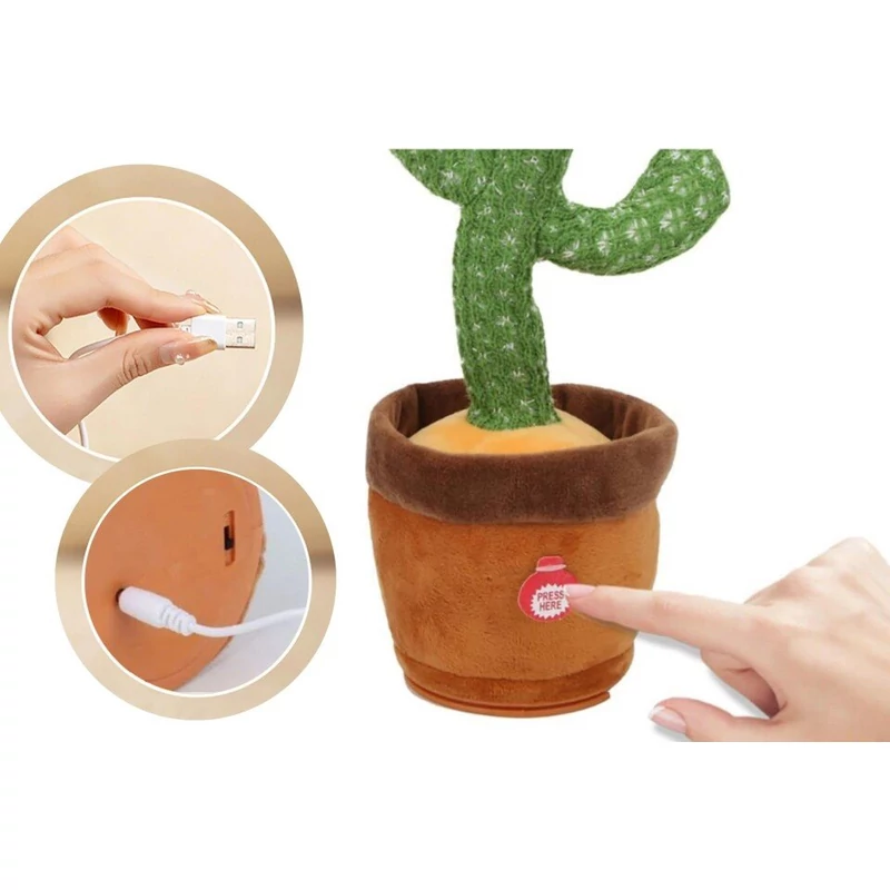 Interaktív táncoló, zenélő, világító kaktusz, hangfelvétellel, vékony, kancsal, akkus, USB kábellel