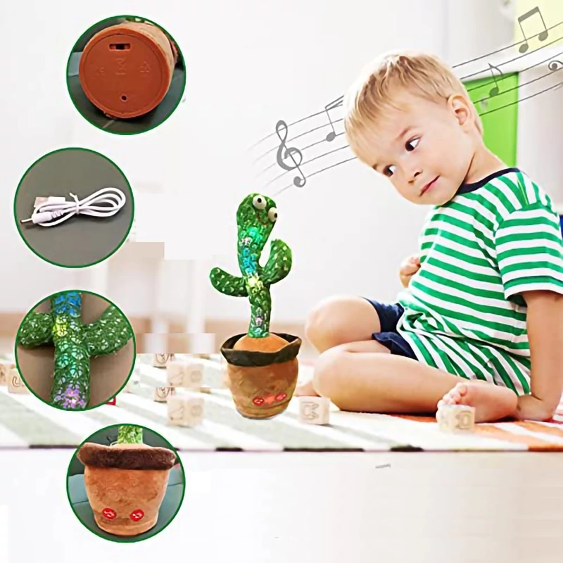 Kápráztassa el gyermekét és foglalja le a figyelmét akár több órán keresztül! Ez a zenélő kaktusz nemcsak egy egyszerű plüss, hiszen zenélés közben táncol és világít, de legkülönlegesebb funkciója a beszéd. Képes visszamondani akár hosszabb mondatokat is, utánozni hangokat, amelyeket akár gyermeke, akár Ön mond neki! Nemcsak vicces, de edukatív is, hiszen gyermeke visszahallja saját magát. Hangfelvétel lehetőség is van benne, a gomb hosszanti megnyomásával képes 15 másodpernyi szöveget rögzíteni, majd visszajátszani. Felnőttek számára is vicces, szórakoztató eszköz, megfelelő lehet akár humoros ajándékként számukra. A célközönség azonban egyértelműen a gyerekek, hiszen a kaktusszal szórakozva tanulhatnak, miközben játszanak és együtt nevetnek. Biztonságos eszköz továbbá, hiszen plüssből van, így a legkisebbeknek is megfelelő lehet.