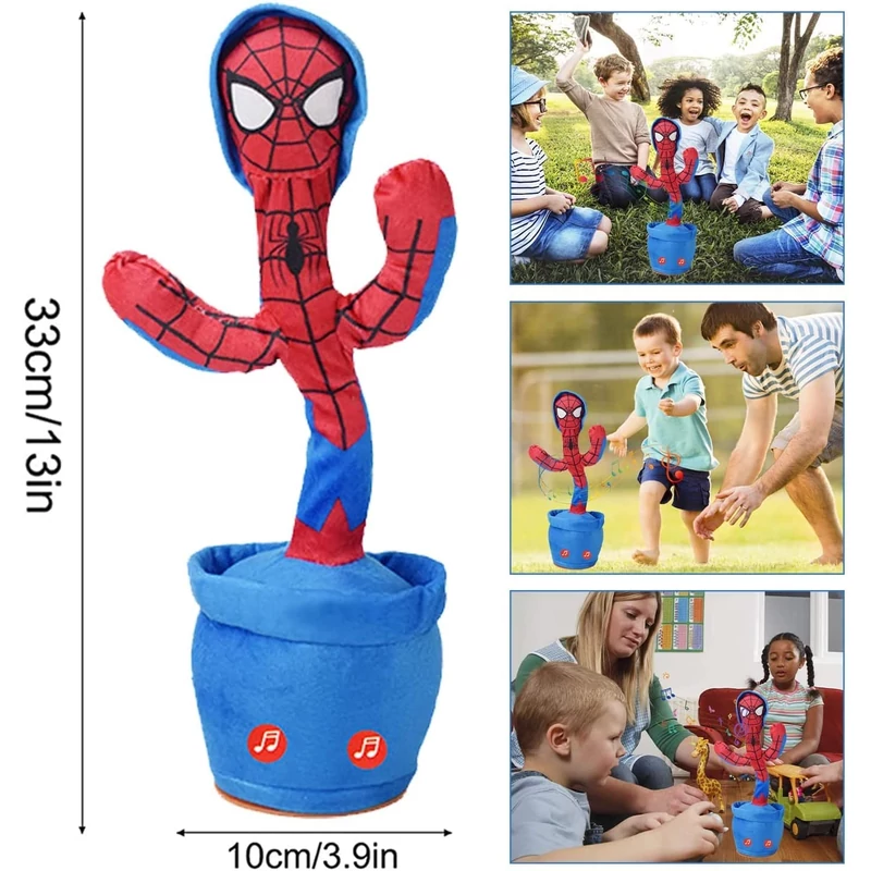 Interaktív visszabeszélő táncoló, zenélő, világító kaktusz, hangfelvétellel, Pókember mintázattal