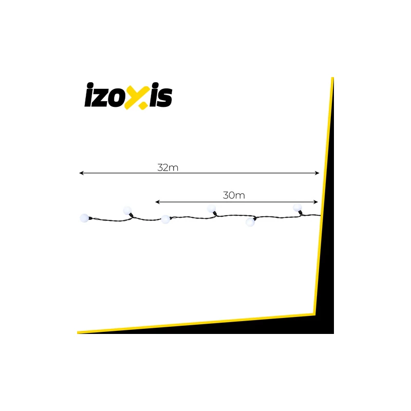 Karácsonyi dekorációs fényfüzér 300 db gömb alakú leddel, 30 méter, 8 üzemmód, melegfehér