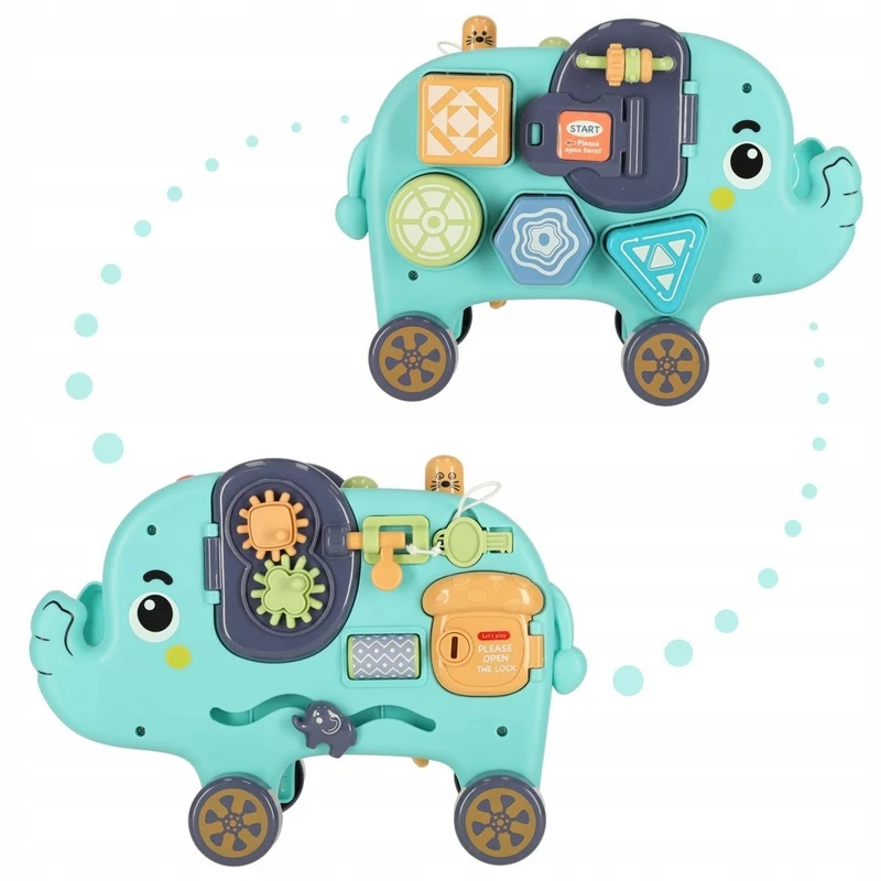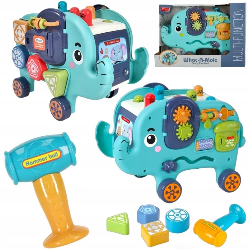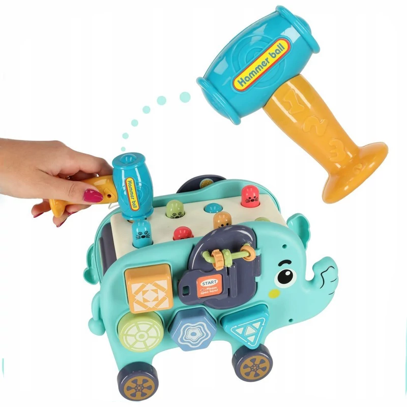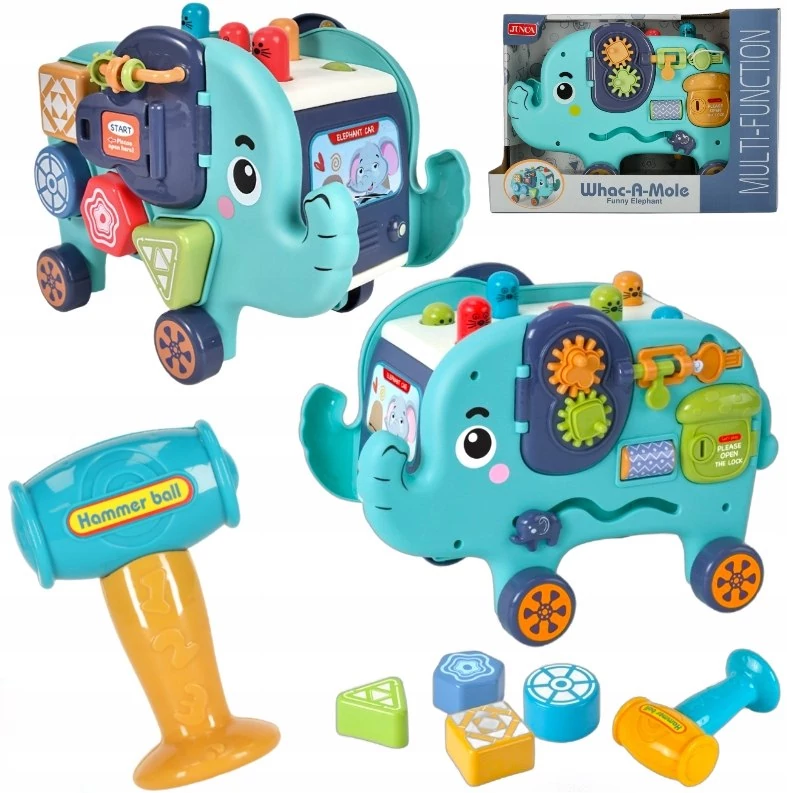 Az interaktív elefánt többfunkciós kialakítása egyesíti a kalapácsos, a formaillesztős, a fogaskerekes fejlesztőtábla és a csúsztatható elemek előnyeit. A gyermek játék közben fejleszti a koordinációját, a koncentrációját és a kitartását. A különböző formák, textúrák és színek ösztönzik az érzékszervek működését, miközben erősítik a figyelmet és a megfigyelőképességet.