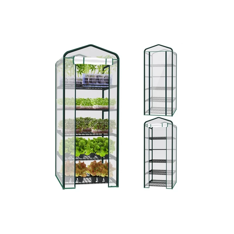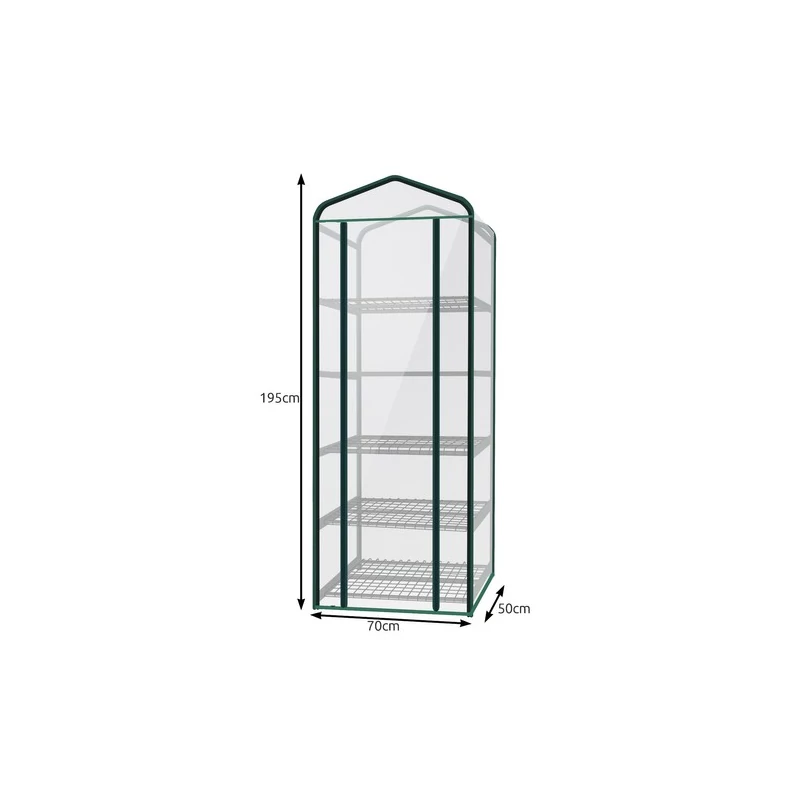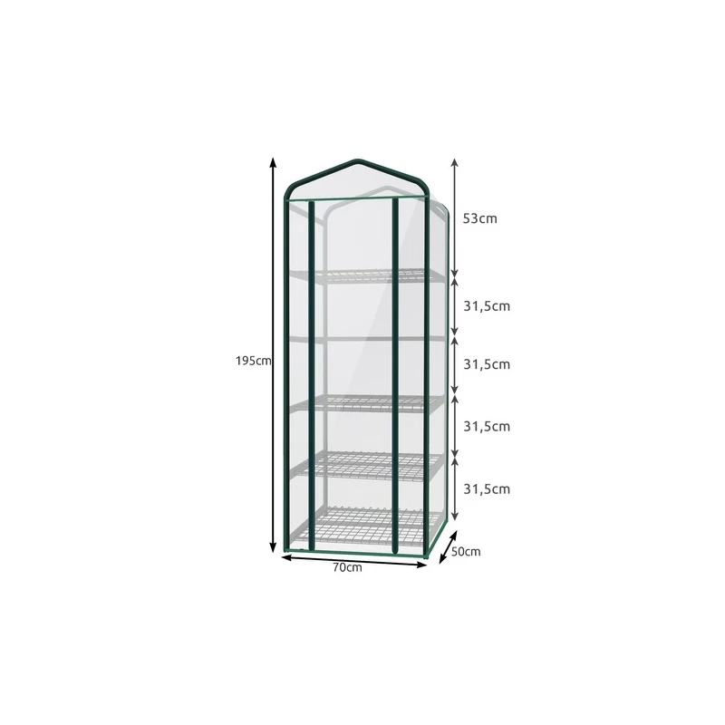 Mini fóliasátor, melegház, fém vázas, 5 polccal, 195 x 70 x 50 cm