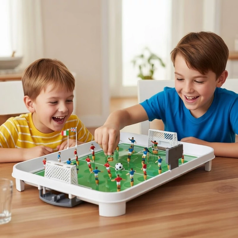 Élje át a stadionok izgalmát közvetlenül az otthonában! Ez az XXL méretű rugós asztali foci garantált szórakozást nyújt az egész család számára. A játék kiválóan fejleszti a reflexeket, a szem-kéz koordinációt és a versenyszellemet, miközben a dinamikus játékmenet a valódi mérkőzések hangulatát idézi. A masszív felépítésnek és a nagy méretnek köszönhetően a játékosok stabilan állnak a pályán, így az intenzív összecsapások során is megbízható élményt nyújt. Ideális választás gyerekeknek, tinédzsereknek és felnőtt futballrajongóknak egyaránt, hiszen generációkat köt össze a közös játék öröme. Tanuljon meg egészségesen versenyezni, fejlessze ügyességét, és élvezze a korlátok nélküli szórakozást ezzel a klasszikus, mégis modernizált társasjátékkal!