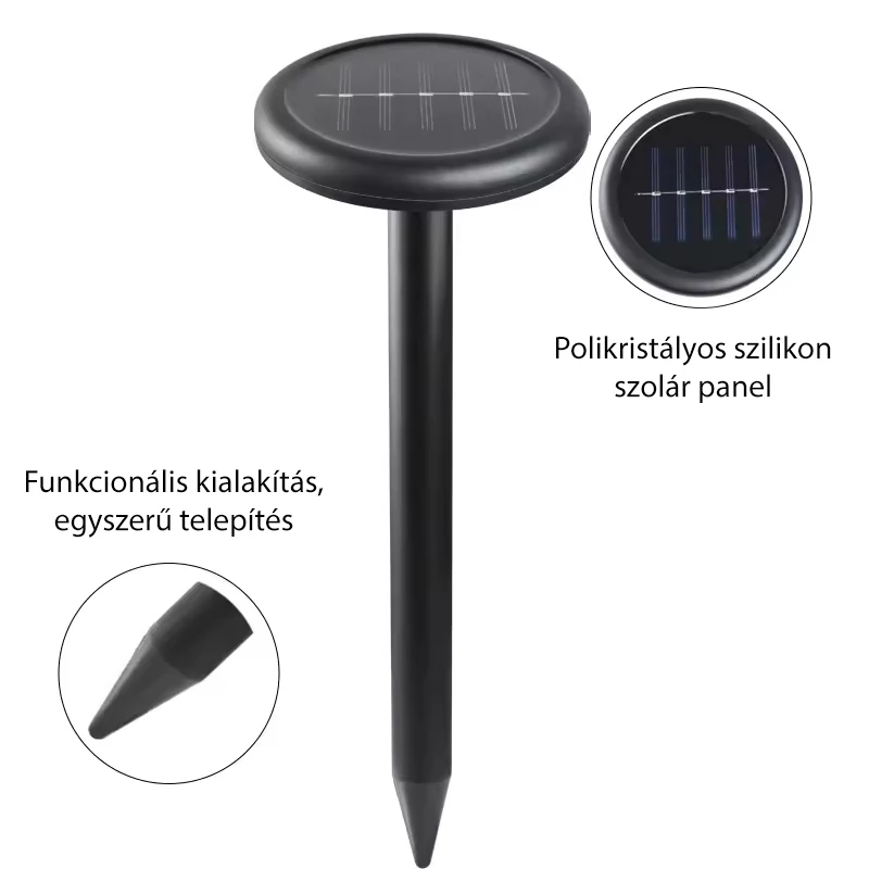 Az ultrahangos leszúrható vakond- és rágcsálóriasztó egy rendkívül hatékony eszköz, melyet kifejezetten vakondok és rágcsálók távoltartására terveztek. A kerti területek védelmére szolgál, és segít megelőzni az állatok által okozott károkat, például az ásást, rágást vagy a növények károsítását. Az eszköz napenergiával működik, ami környezetbarát és gazdaságos megoldást kínál.