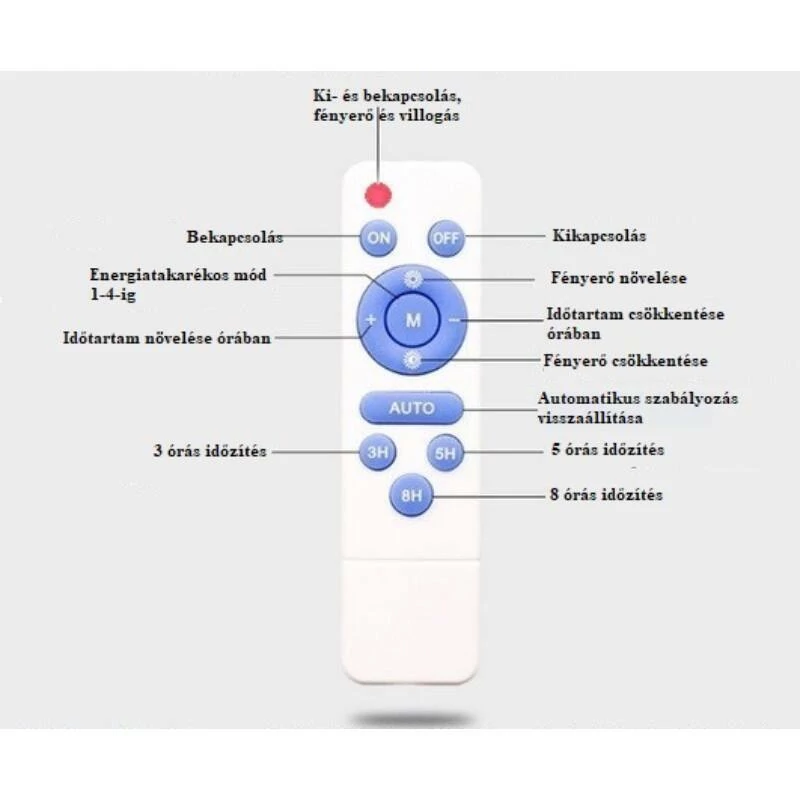 Napelemes utcai, udvari LED lámpa távirányítóval, különálló napelemmel, 200W