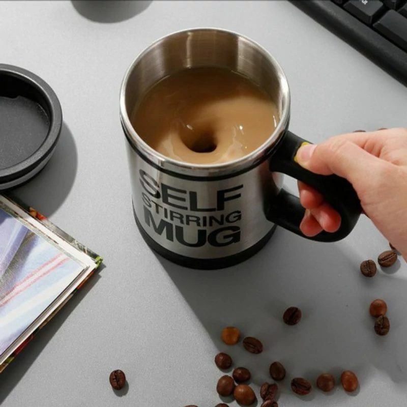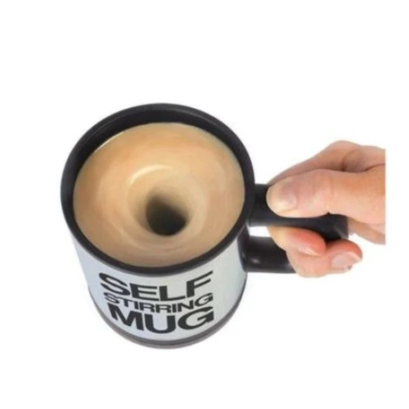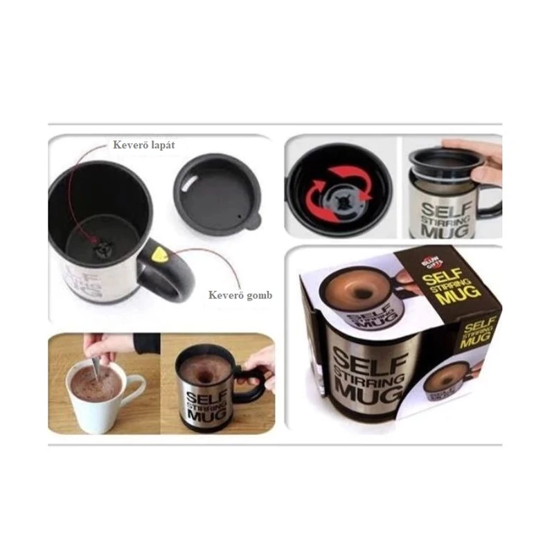 Ha ismersz valakit, aki kifejezetten lusta, akkor megtaláltad számára az ideális ajándékot! Ezzel a bögrével még a reggeli kávé kevergetéséhez sem kell energiát pazarolni, gombnyomásra elvégzi azt helyette a bögre saját maga! A bögrében örvénylő ital gyorsan és egyenletesen keveredik, mindemellett szórakoztató látványt is nyújt. Alkalmas lehet meleg italok lehűtéséhez, porból készülő innivalók, pl. kakaó, nescafe elkészítéséhez. A bögrét magunkkal vihetjük bárhová, akár egy elvitelre rendelt kávéval együtt, köszönhetően műanyag tetejének. A fedél úgy van kialakítva, hogy levétel nélkül akár inni is lehessen a bögréből, szívószálat be lehessen dugni, valamint a gőz távozni tudjon. A fedélen körben gumitömítés található, így nem löttyen ki belőle az ital, keverés közben sem. Működéséhez két darab AAA méretű elem szükséges.