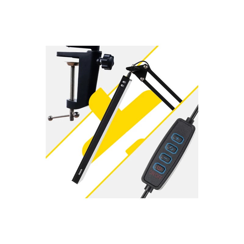 A lámpán 3 színhőmérsékletű fény kapcsolható meleg illetve semleges a pihenéshez, és hideg a munkához. A megvilágítás fényerejét 10 fokozatban a saját igényeihez igazíthatja. A lámpa a tartozék rögzítővel asztallapra szerelhető vagy a talppal asztalra állítható. Az állítható karok 3 síkú beállítást tesznek lehetővé 360°/220°/270°-ban.