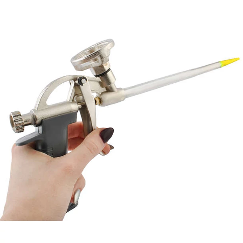 Az eszköz fő részének szerkezete fémből készült, így tartós és könnyen használható. A speciálisan profilozott műanyag nyél garantálja a szerszám stabil tartását a kézben, ami jelentős hatással van a hab precíz használatára, különösen a nehezen hozzáférhető helyeken.