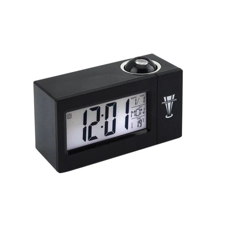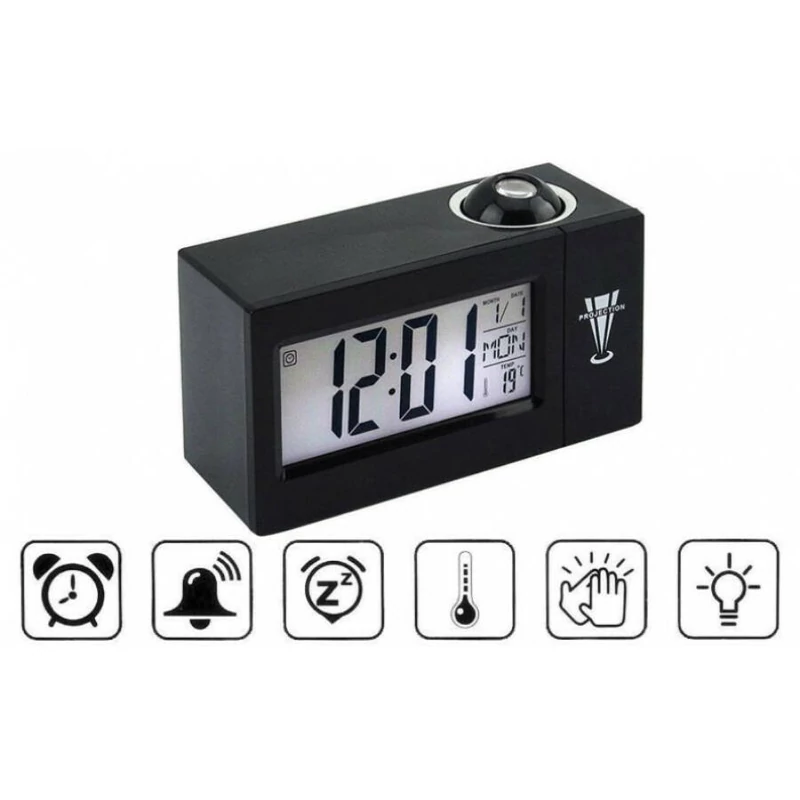 Hasznos, multifunkciós ajándék, és praktikus társ a mindennapokban. Letisztult, elegáns megjelenésű digitális ébresztőóra, amely különösen jól mutat bármely modern berendezésű házban. Jól látható, nagy méretű kijelzőjén az idő mellett a hőmérsékletet és a dátumot is kijelzi. A világítás erősségét képes hanghatásra növelni, beépített hangérzékelő funkcióval rendelkezik. Különlegessége, hogy tetején egy 180 fokban forgatható kivetítő kapott helyet, így az időt akár falra, szekrényre is képes kivetíteni hangjelzésre. Működtetése USB portról és 3 db AAA elemmel is megoldható, így akár hordozható óraként is használható.