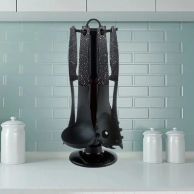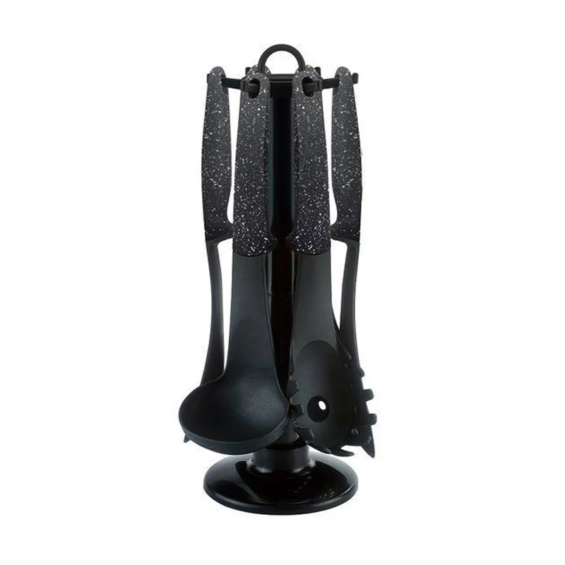 Royalty Line 7 részes konyhai tálalóeszköz készlet tartóállvánnyal, fekete