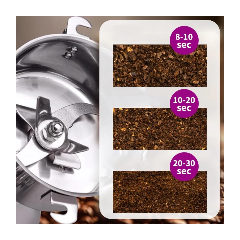 A nagy teljesítményű elektromos malom alkalmas frissen őrölt termékek előállítására, így az egészséges életmód kedvelői számára egy rendkívül hasznos társ lehet. Használható termények, különböző hüvelyesek, fűszerek, gyógynövények vagy magvak őrlésére, darálására, mindemellett pedig hagyományos kávédarálóként is funkcionál. Az őrlési idő növelésével az őrlemény finomsága változtatható az egyéni igényeknek megfelelően. A készülék tartályában egy ciklus során akár 150 g termék is feldolgozható. A termék elegáns, fényes megjelenése feldobja a konyhát, és modern hatást kölcsönöz. A készülék használata valamint tisztán tartása is rendkívül egyszerű, így az idősebb korosztály számára sem okoz problémát a működtetése.