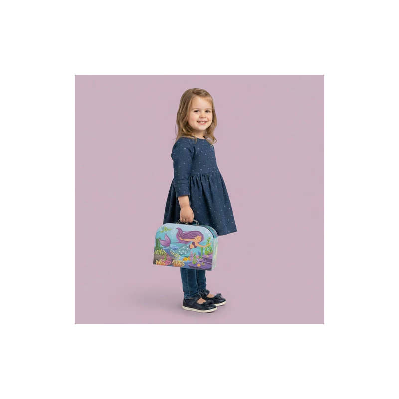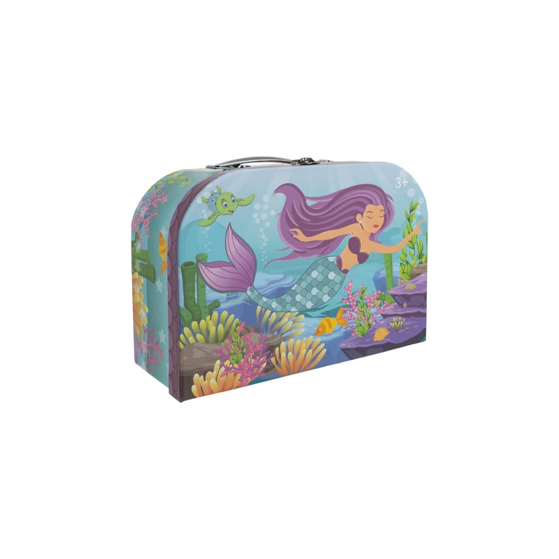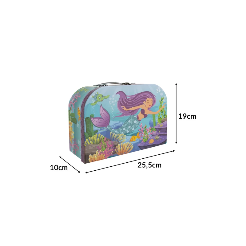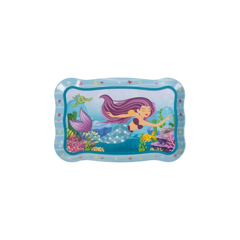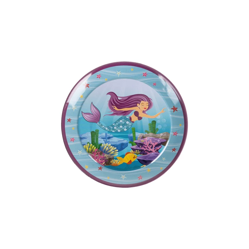 Sellő mintás játék teáskészlet dobozban, teáskannával, tálcával, 9 részes, fém készlettartóban, pasztell színű