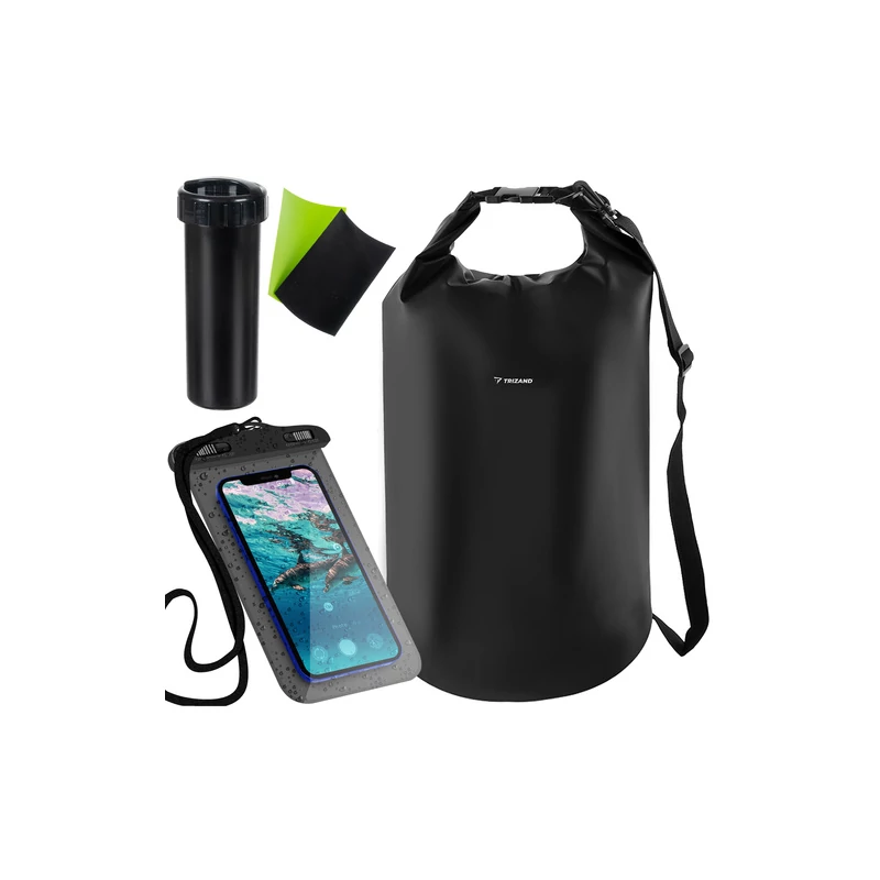 - INGYENES alapcsomag az utazáshoz: 10 l-es vízálló táska, vízálló telefontáska és javítókészlet