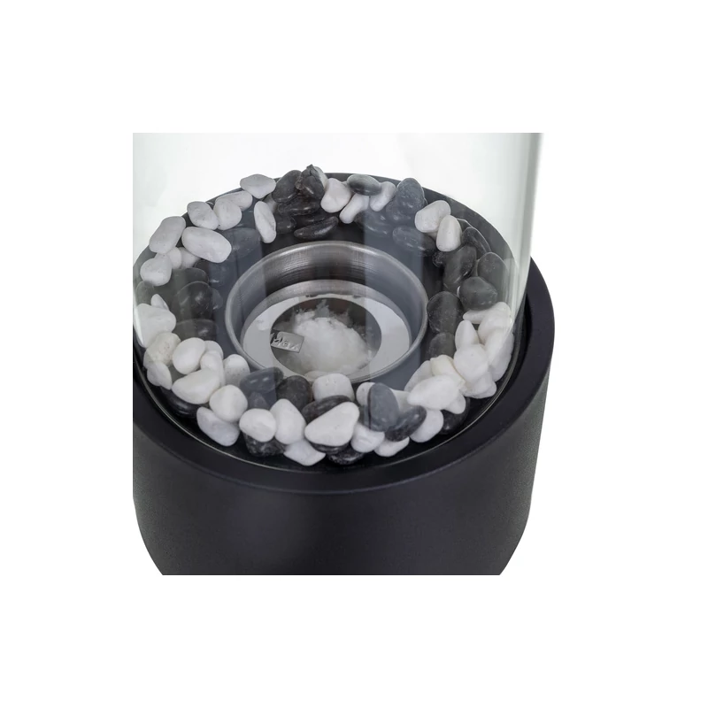 Szabadon álló BIO kandalló otthonra és teraszra, füstmentes, bioetanol bioüzemanyaggal működő, üvegfallal, hőtartó kavicsággyal, 28 x 16 x 16 cm, fekete
