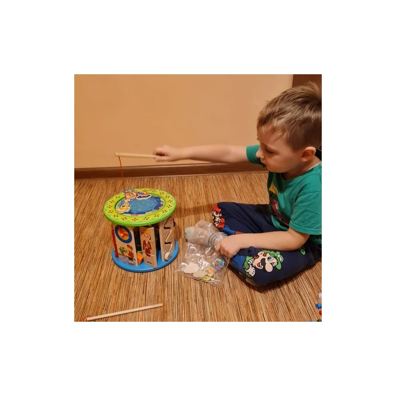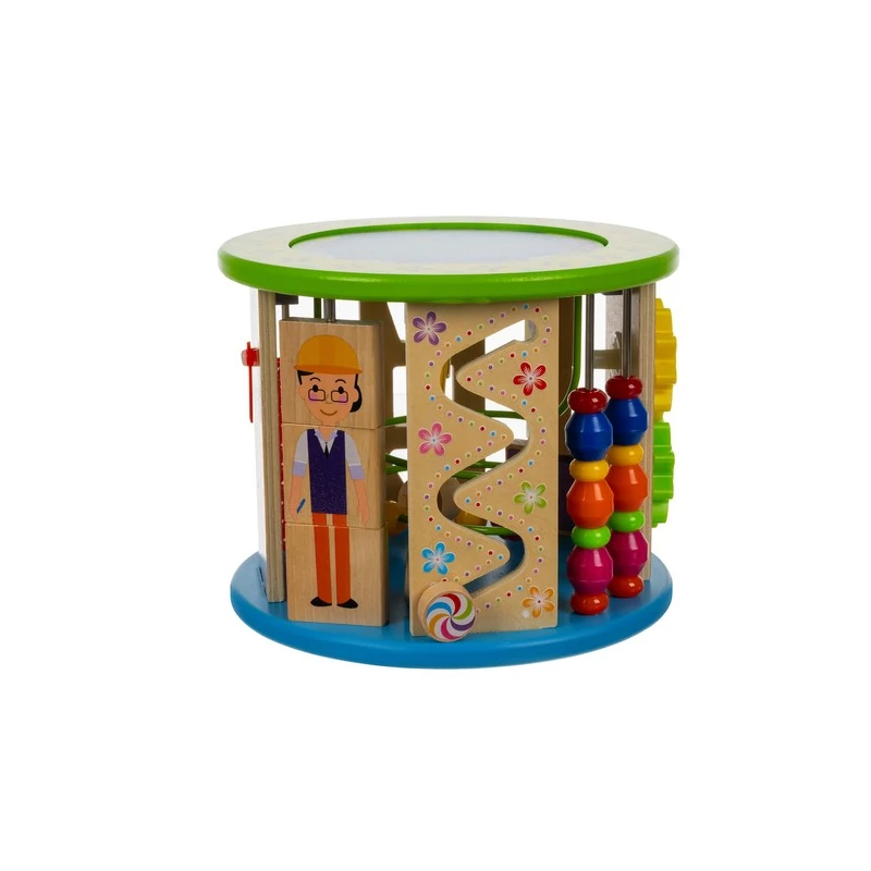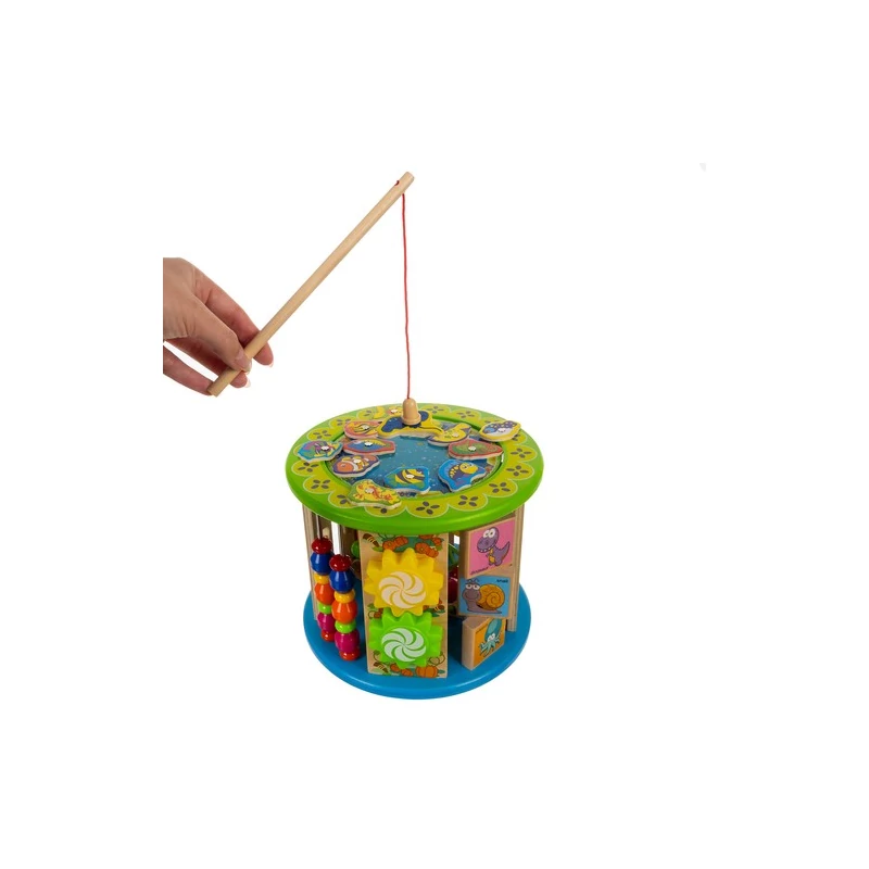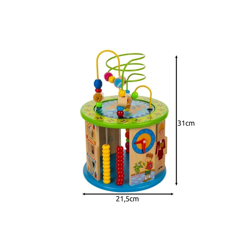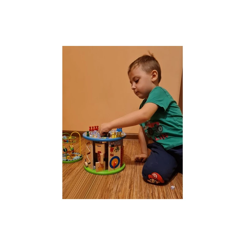Ezt a többfunkciós fejlesztőjátékot minden kisgyermek szeretni fogja. A fából készült készségfejlesztő henger különböző izgalmas játékokkal nem csak órákig tartó szórakozást, hanem tanulási élményt is nyújt.