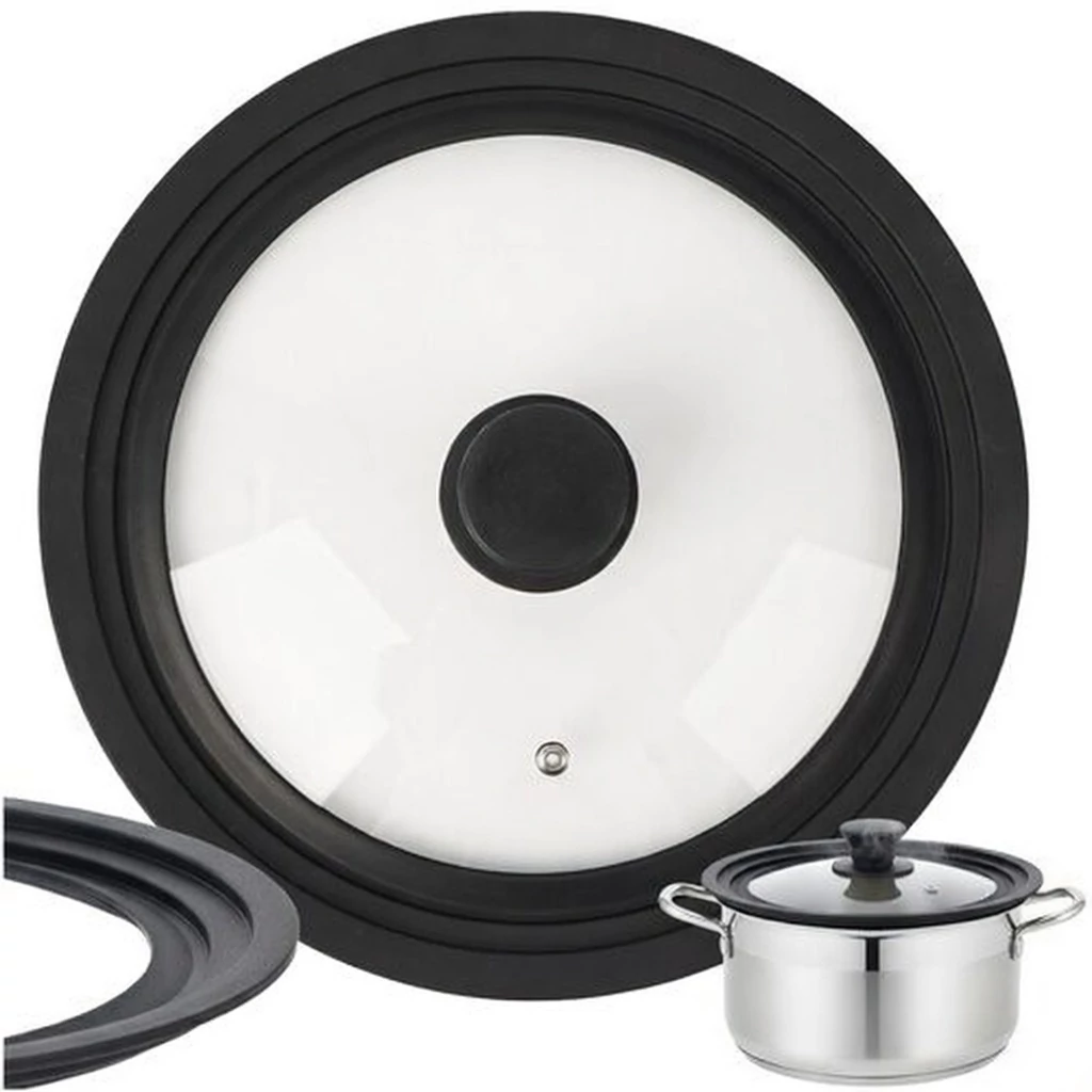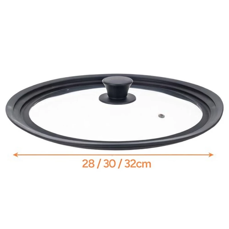 Univerzális 3 az 1-ben üvegfedő szilikon peremmel, 28, 30 és 32 cm-es edényekhez és serpenyőkhöz, hőálló és helytakarékos konyhai kiegészítő