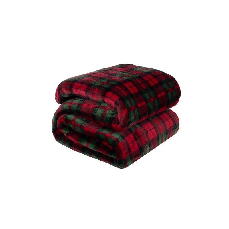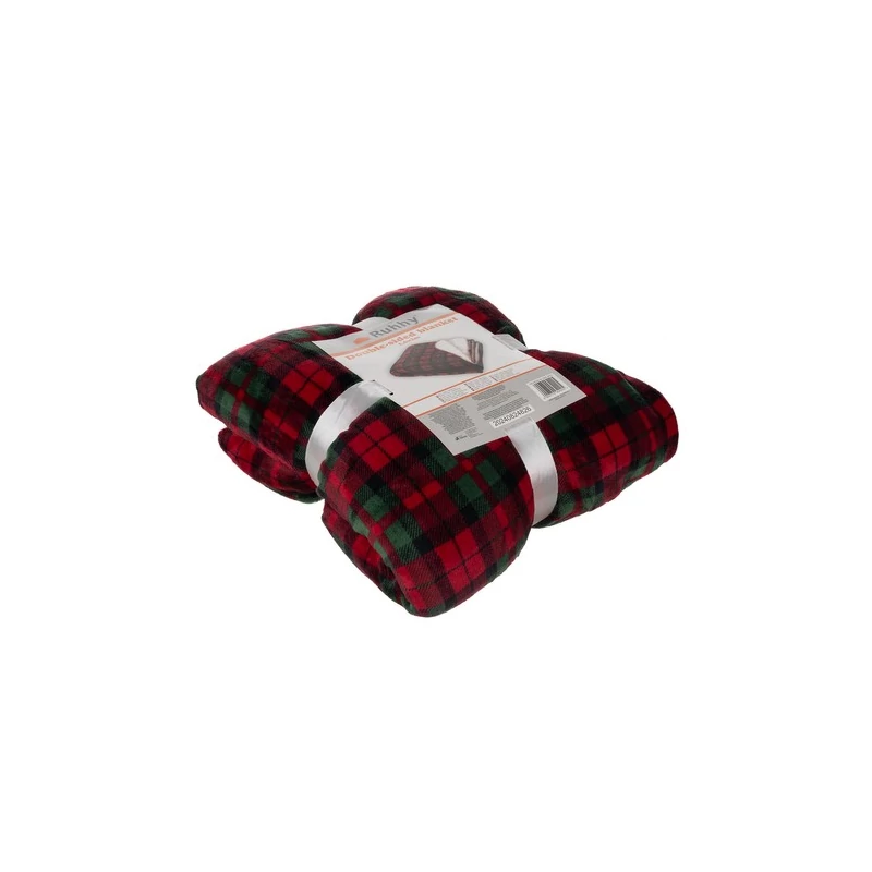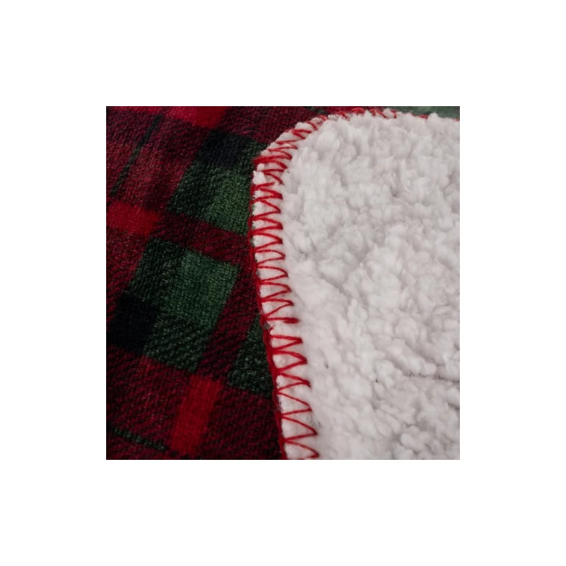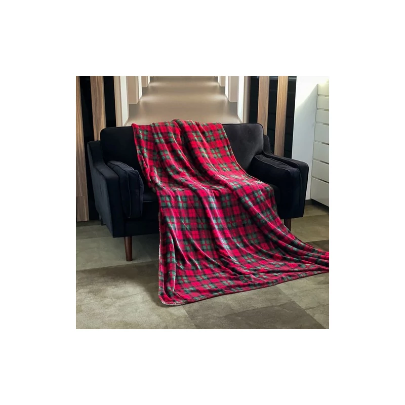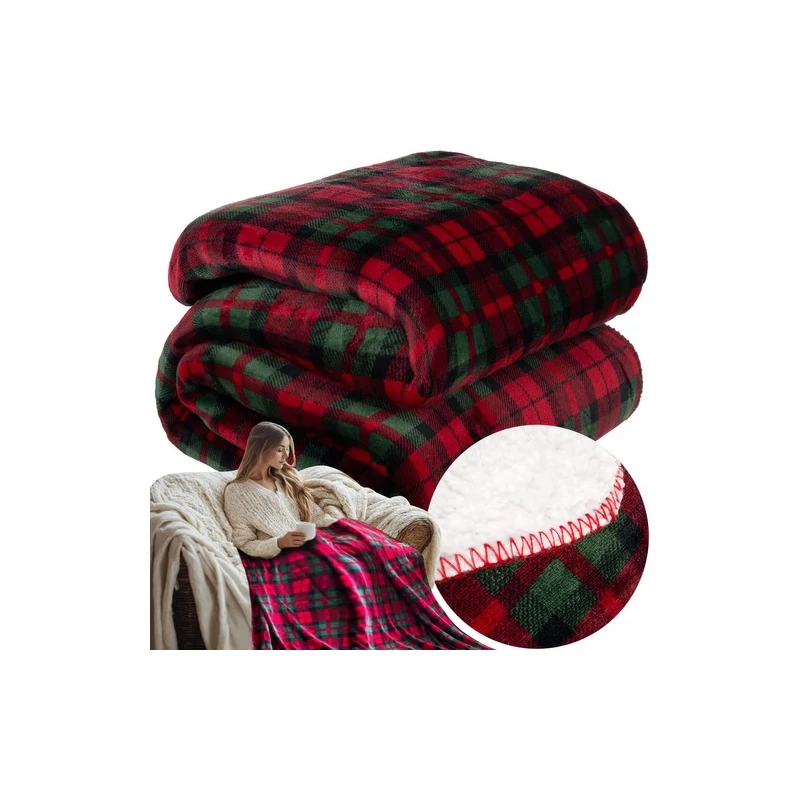 Vastag, puha kétszemélyes-kétoldalas, karácsonyi takaró, kockás mintával, 160x200 cm méretben